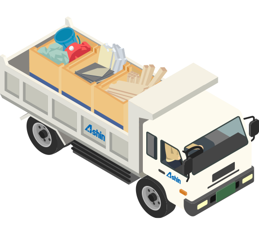 内装工事などで発生する廃棄物を分別し、目的別に処理を行います。